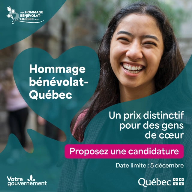 Les Prix Hommage bénévolat-Québec sont remis par le gouvernement du Québec chaque année, dans le cadre de la Semaine de l’action bénévole, afin de souligner l’engagement et la contribution de bénévoles et d’organismes de toutes les régions du Québec.
